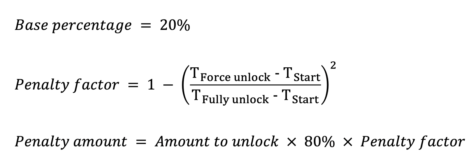 At day 1, penalty cost is 80% of the total EGP tokens locked by the user and will decrease non-linearly over time.